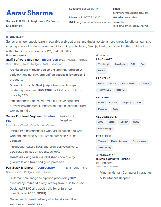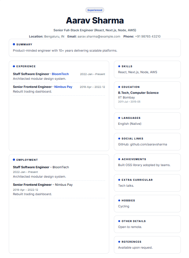 The builder supports various resume formats, including chronological, functional, and combination resumes. You can create resumes tailored to different industries, experience levels, and job roles.