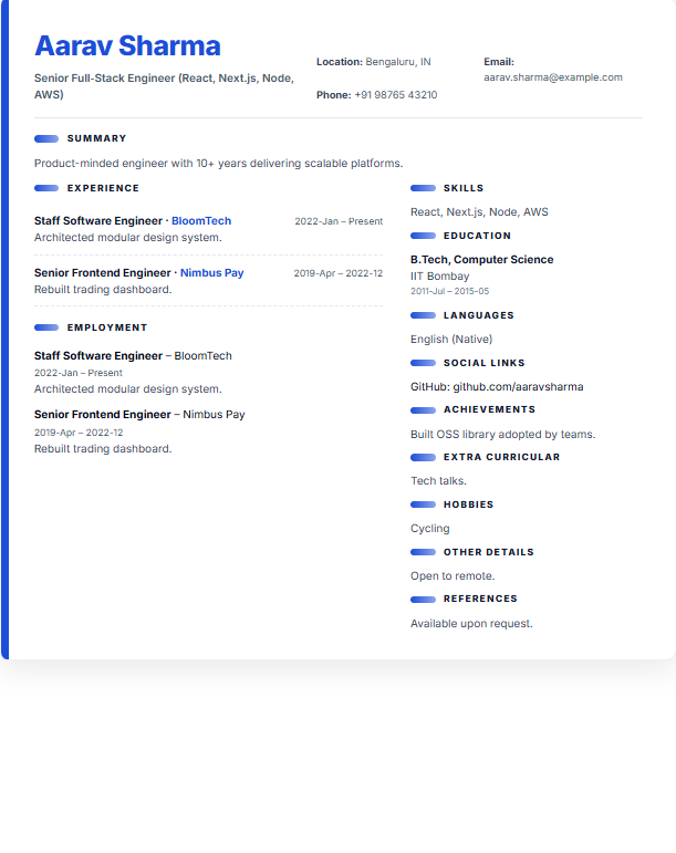The AI incorporates keywords and phrases relevant to your industry and job role, ensuring that your resume is optimized for applicant tracking systems (ATS) and catches the attention of hiring managers.